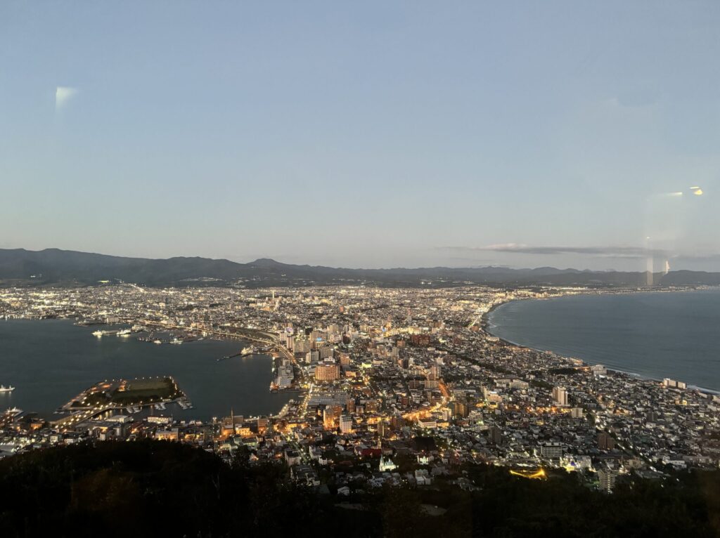 夕方には函館山に上り、世界三大夜景と呼ばれる美しい景色に心奪われました。