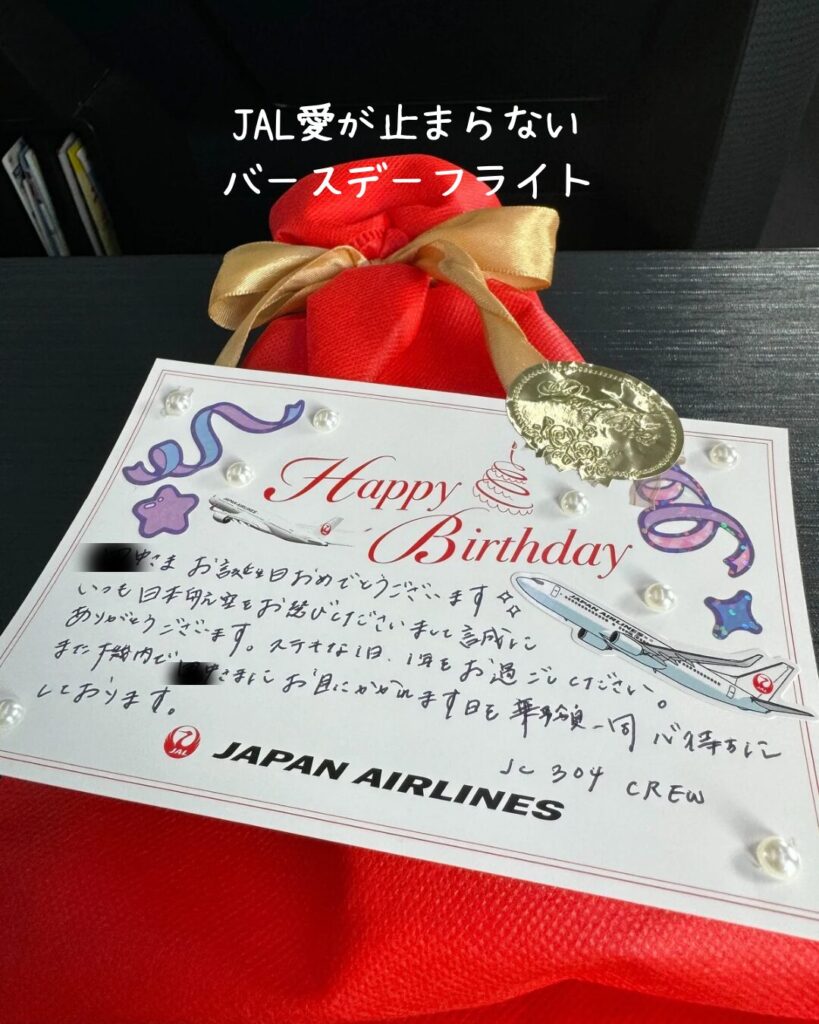 CAさんから「お誕生日おめでとうございます」と声をかけていただき、さらに素敵なプレゼントまで…!思わず胸が熱くなりました。