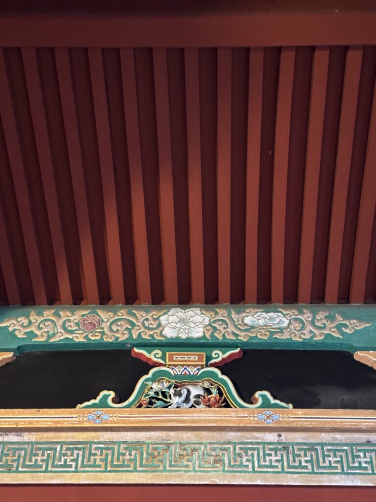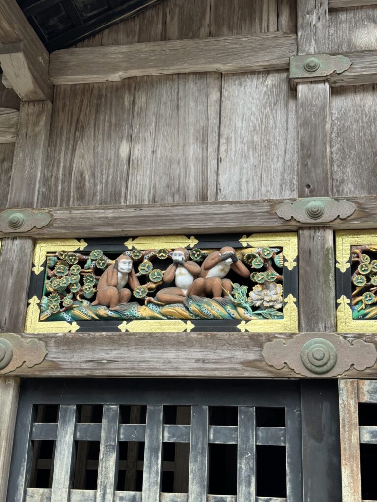 ひっそりと佇む眠り猫(見落とさないよう注意)、そしてお茶目な三猿の彫刻。