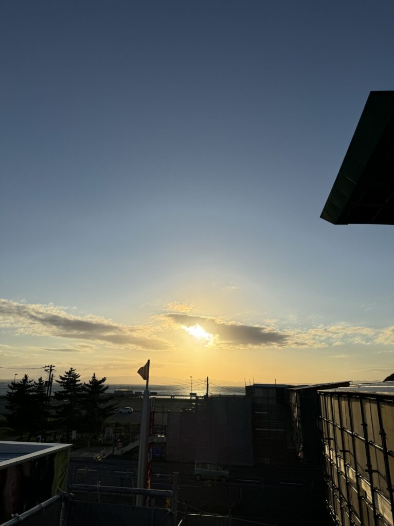 いい気分で青森市内に戻る電車に揺られていると、綺麗な夕陽まで歓迎してくれました。