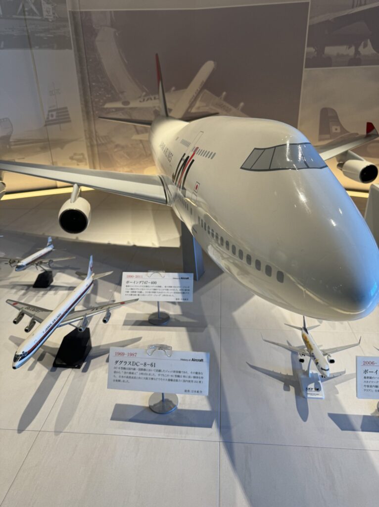 昔の機体の模型や、歴代の制服の展示があり、懐かしさと共に「JALと歩んできた人生」をしみじみ噛みしめました。