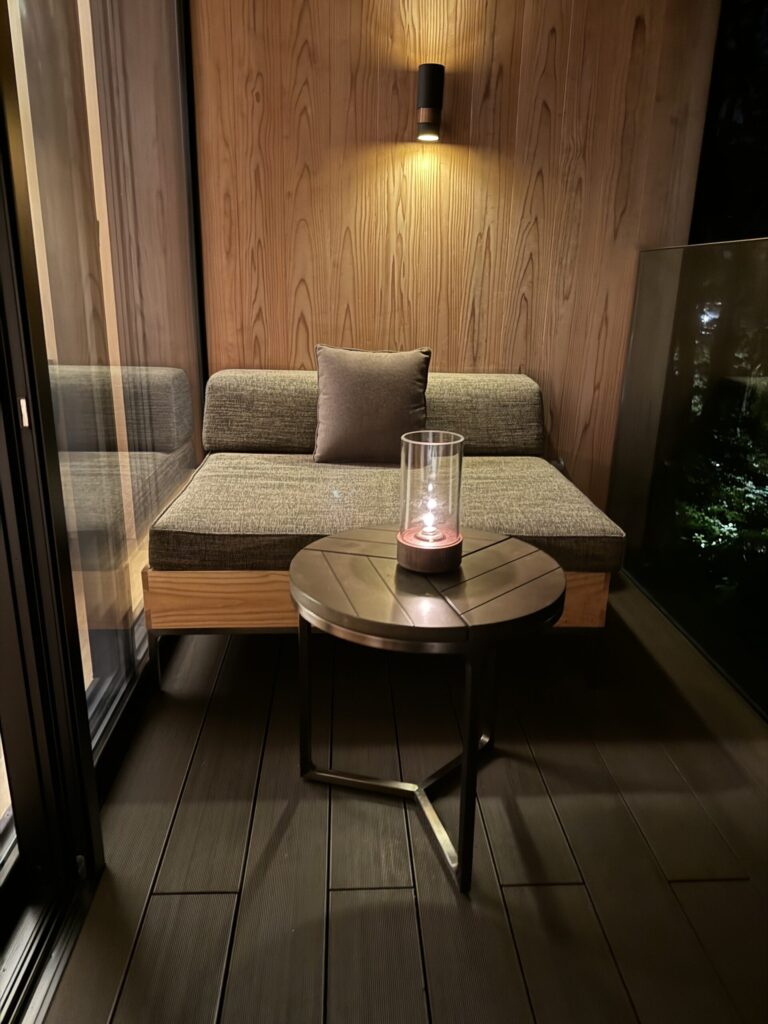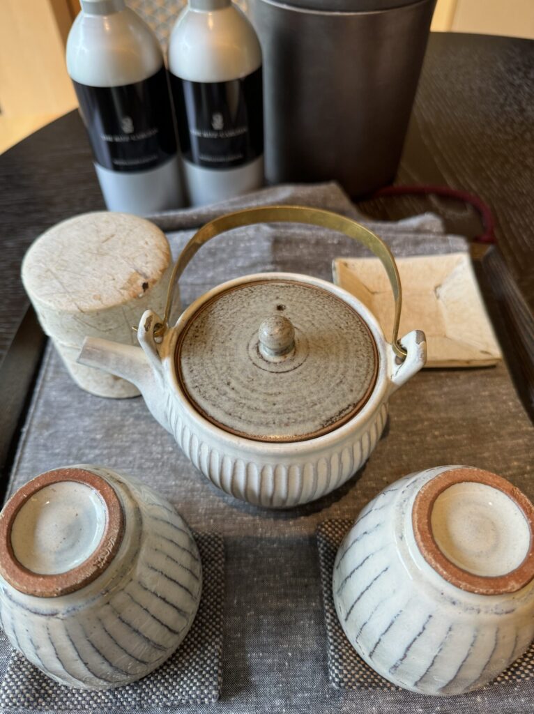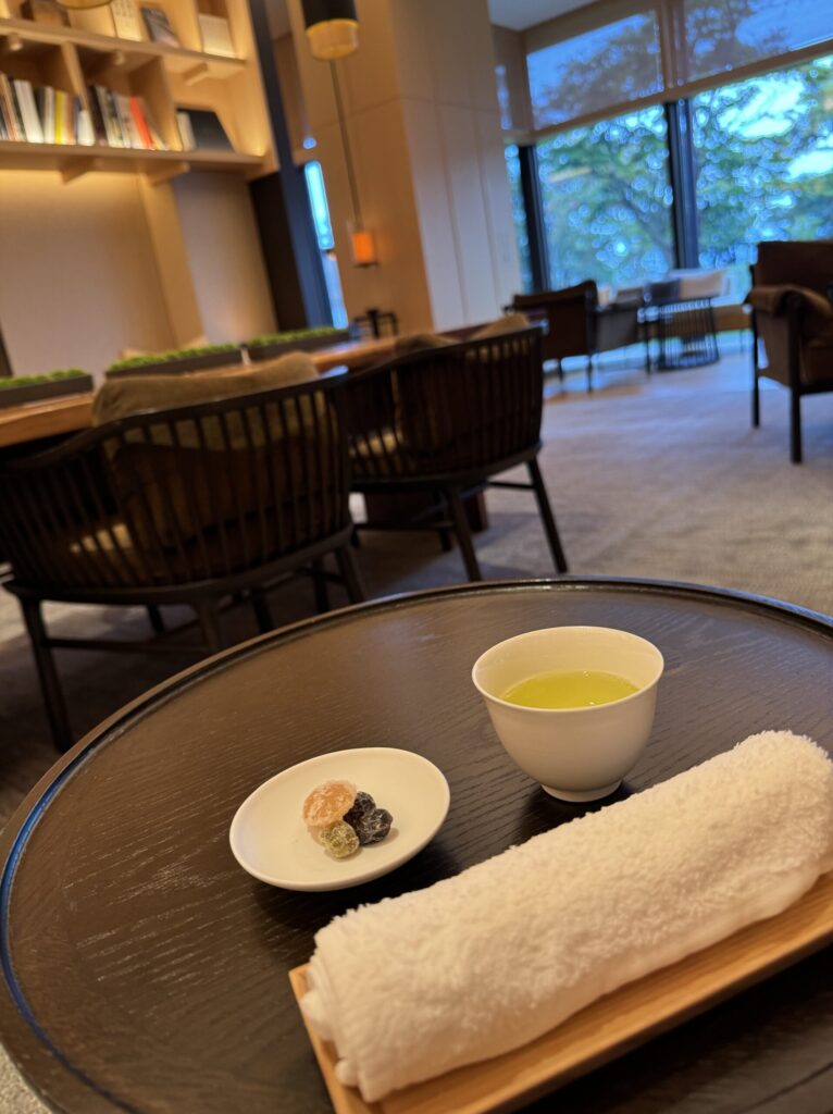 丁寧に淹れてくださった日本茶と甘いお豆の和菓子をいただきながらのチェックインは、“旅の始まり”というより“日常の終わり”をゆっくりと受け止める時間のようでした。