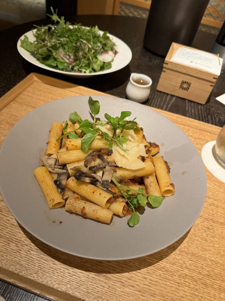 地元・栃木の食材をふんだんに使ったサラダとパスタをチョイス。