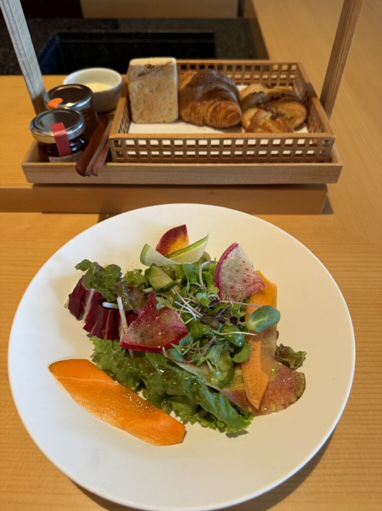 窓側の席を案内してくださったので、爽やかな中庭を眺めながらいただく朝食は、体の奥から癒されるような時間でした。