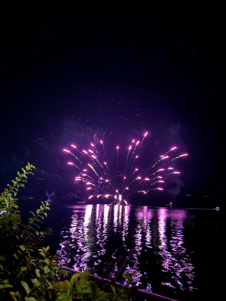 夜には、ホテルの目の前の洞爺湖で花火が打ち上げられます。