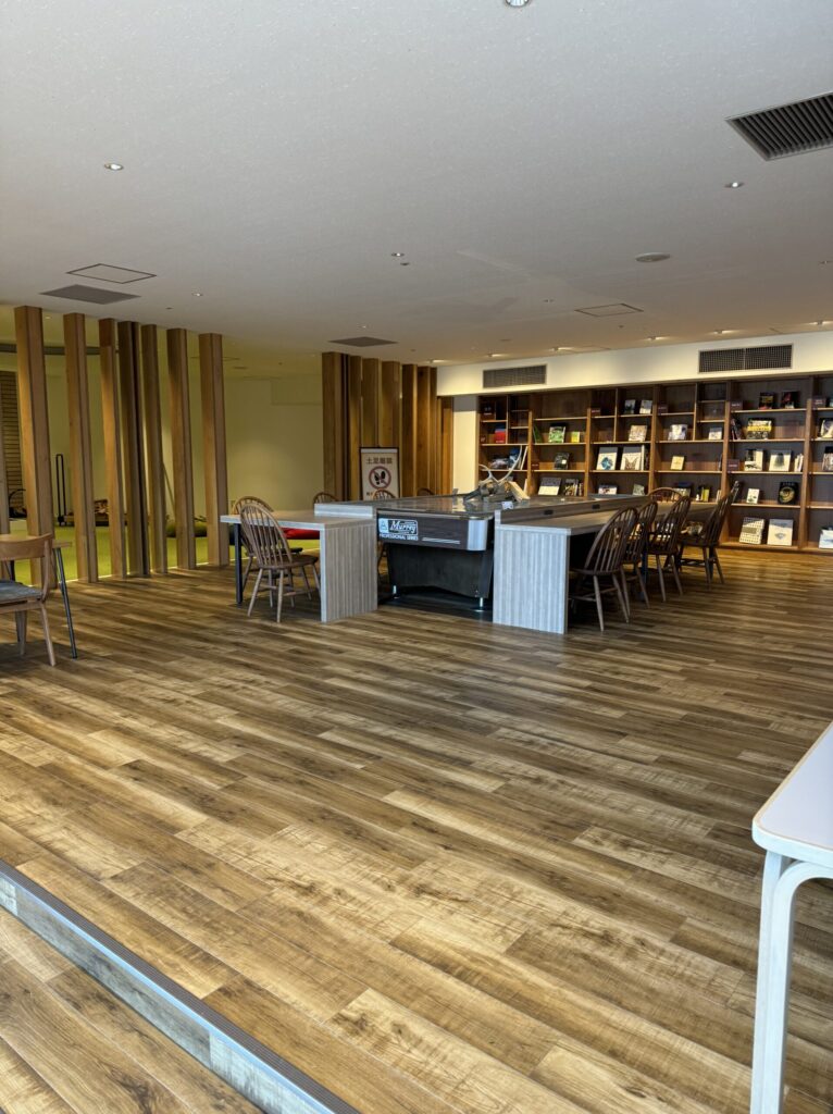 ライブラリーも広々としていて、たくさんの本が並んでいました。
