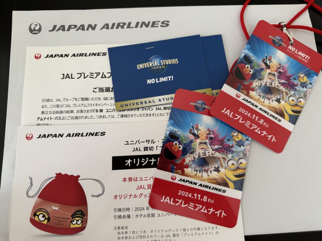 季節柄「カレンダーかな?」なんて思いながら再配達をお願いしたところ、届いたのは、まさかの USJ貸切《JAL Premium Night》招待券。